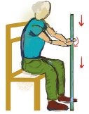 Sentados en la misma silla donde estábamos antes, colocamos el palo entre nuestras piernas,